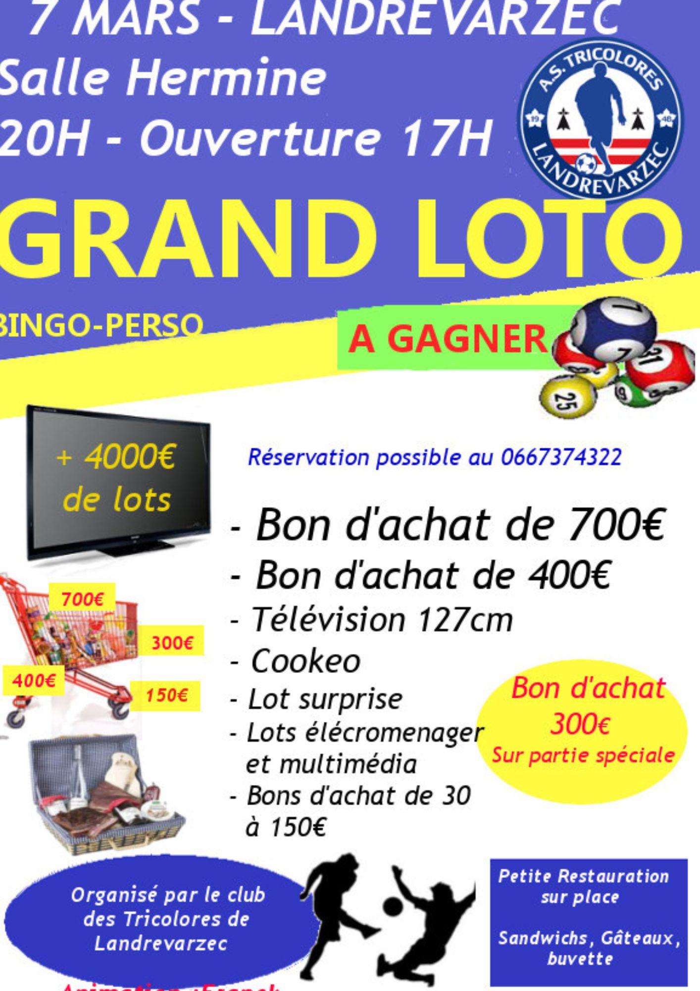 Loto des Tricolores 15 février 2026 Grand loto organisé par le club le 7 mars 2026 à la salle Hermine.